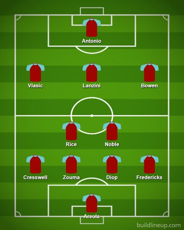 Ryan Fredericks, Issa Diop, Mark Noble, Manuel Lanzini and Nikola Vlasic could also start for the Irons with Lukasz Fabianski, Vladimir Coufal, Craig Dawson, Angelo Ogbonna, Tomas Soucek, Said Benrahma and Pablo Fornals being rotated out of the starting line-up.