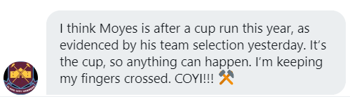 After that, there’s not much pressure on the Hammers but let’s see what happens. Anything can happen in the Cup.