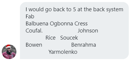 We can expect changes but will those changes be as drastic as Talking’ West Ham mentioned? Of course, we want to go back to a back-three because the team was in better form then but handing Ben Johnson a start out of the blue could be risky, as could starting Andriy Yarmolenko up front over Sebastien Haller.