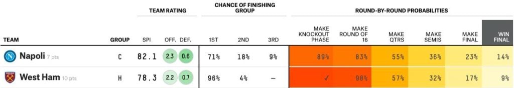 FiveThirtyEight have shared that the Irons have a 9% chance of winning the competition, only better by Napoli, who have a 14% chance.