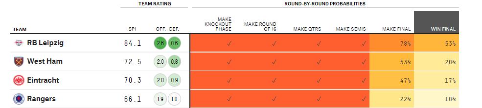 However, when it comes to winning the tournament, West Ham just have a 20 per cent chance.