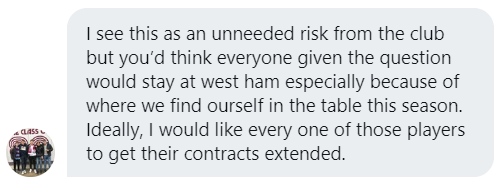 We asked our panel of West Ham Super Fans to react to the club’s stance on contract renewals but the majority believe that delaying contract negotiations until next month is a clever move.