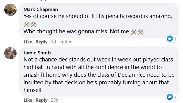 West Ham Super Fans have flocked to a post on the West Ham Zone Facebook page about Mark Noble and David Moyes.