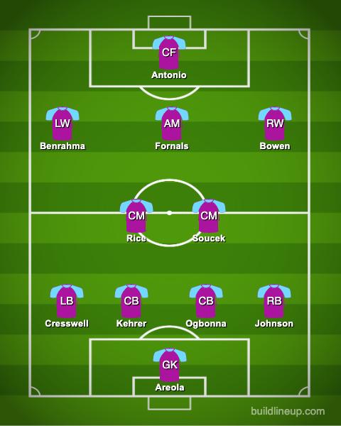 Pablo Fornals continues to impress when given a chance in an attacking midfield role and should come into the side to add some legs and creativity too, while Said Benrahma has been one of the more consistent performers this season on the left and should keep his place.