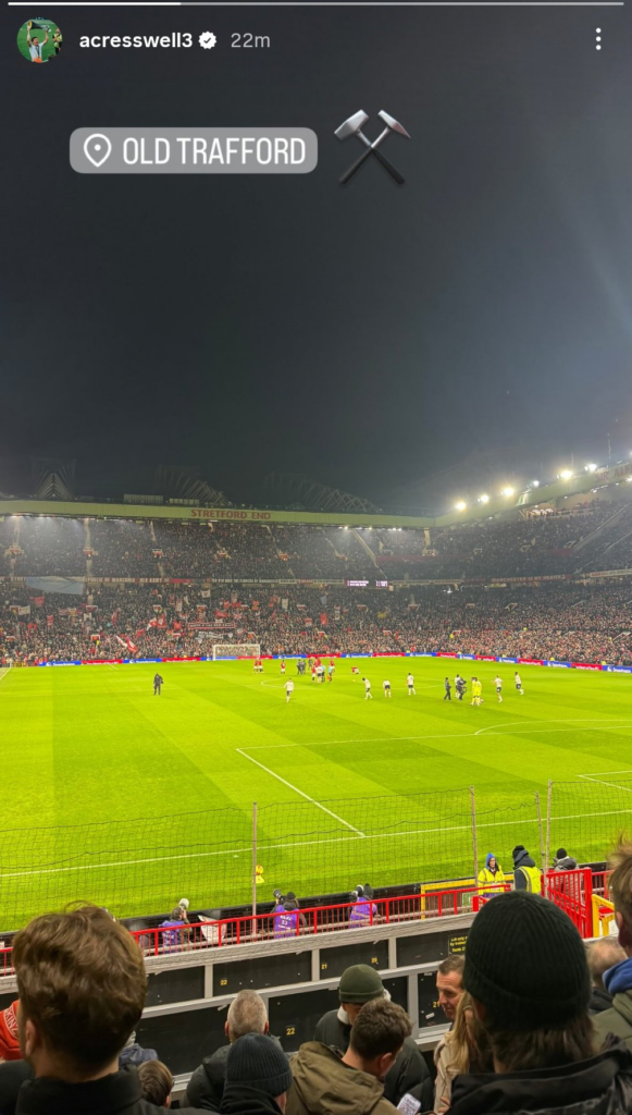 West Ham‘s X account shared an image of Cresswell among the away support at Old Trafford, while the 35-year-old shared a heartfelt post from the stands.