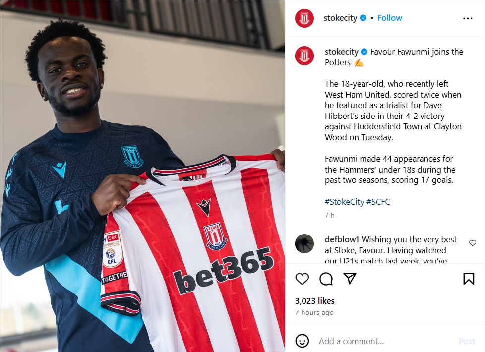 However, in a sudden of turn events, it has emerged that Fawunmi has put pen to paper on a two-and-a-half-year deal at Stoke City instead [The Evening Standard].