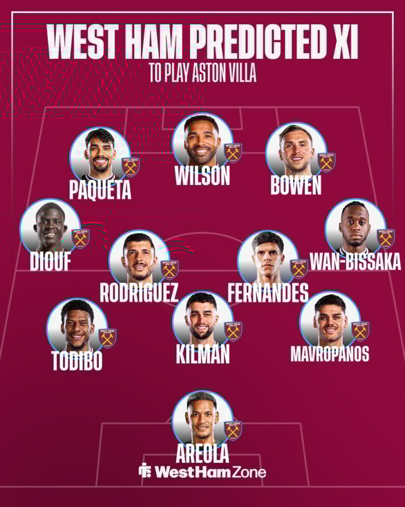 West Ham have great midfield options, but Nuno could controversially use Guido Rodriguez‘s experience once again versus the Villans, giving the Argentine the nod over Freddie Potts and Soungoutou Magassa.