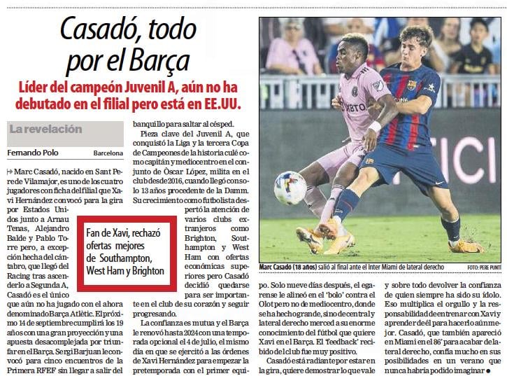 It is understood that Casado has decided to stay at Barca as the club is close to his heart and because he is progressing well within their academy.