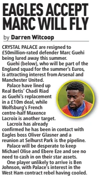 On page 57 of their 26 May edition, Darren Witcoop’s report reveals that Palace’s interest in the 24-year-old has cooled, making a switch across London unlikely.
