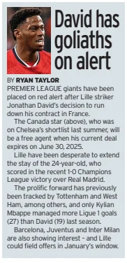 Jonathan David has decided to run down his contract at Lille amid interest from West Ham United and others, according to the Sunday Mirror.