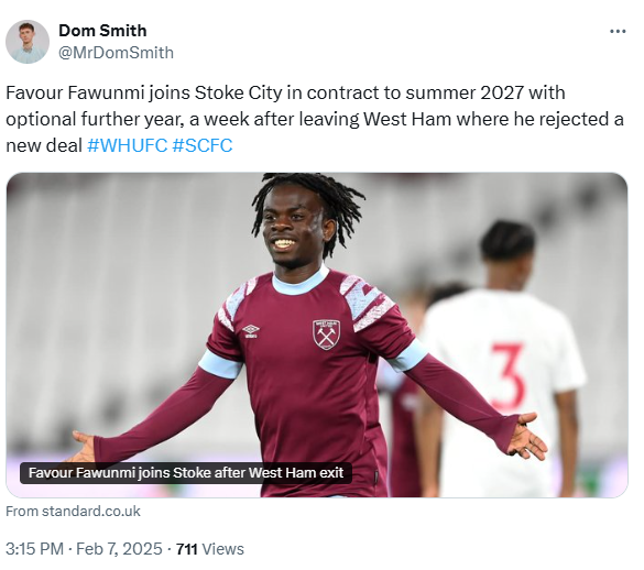 It is possible that Fawunmi rejected a new contract at West Ham as he did not see a pathway to the first team there.