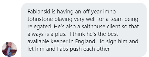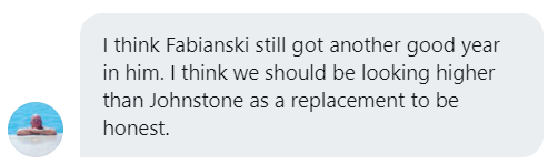 Some fans are happy for Fabianski to stay as the number one for another season with others happy to see Johnstone come in as a long-term replacement for the veteran Pole.