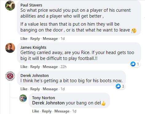 As one would expect, this did not go down too well with Hammers fans on Facebook who slammed Rice for having an issue with decisions made at the boardroom level.