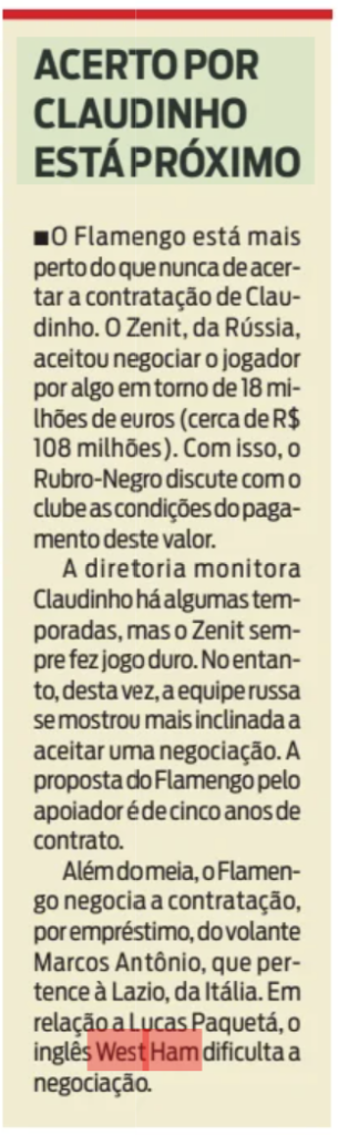 The Brazilian outlet reported in their print edition (11 July, page 14) that negotiations between the Hammers have made the 26-year-old’s potential switch “difficult to negotiate” as talks continue.