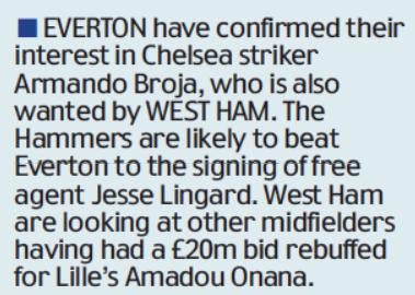 The Daily Mail add on their website that Lingard is “ready to sign again for West Ham” after he spent the second half of the 2020/21 season on loan with the Hammers.